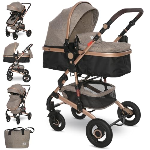 Lorelli Kinderwagen Alba 2 in 1 mit LiegepositionKombikinderwagen, Baby Buggy beige, große Gummireifen, Federung
