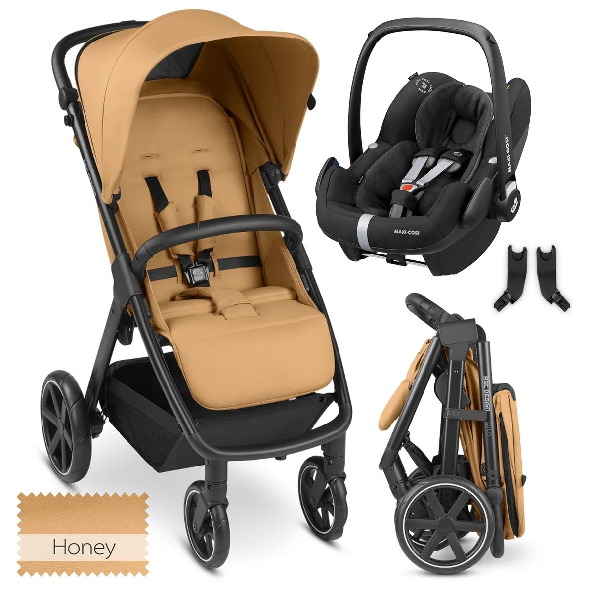 ABC Design Buggy & Sportwagen Avus inkl. Autositz Pebble Pro - Einhand-Faltunghöhenverstellbarer Schieber, Honey - Gratis Mobilitätsgarantie