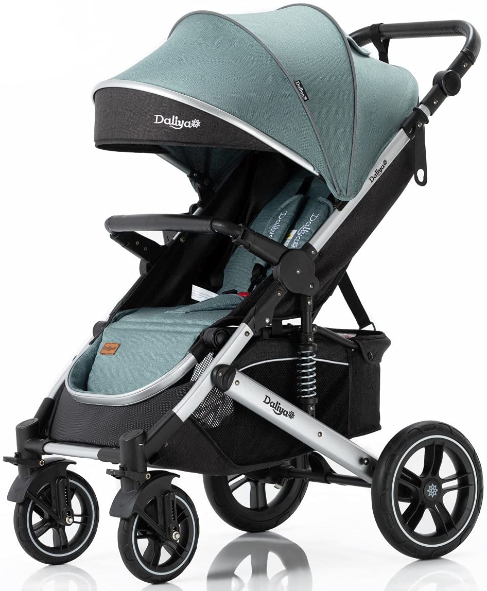 | Name | Daliya® Rapidy Buggy / Kinderwagen 0-36 Monate / Sportwagen mit Liegeposition / Wickeltasche, Winterfußsack, Ess- & Spieltisch und mehr Linen Grün – Silber |
