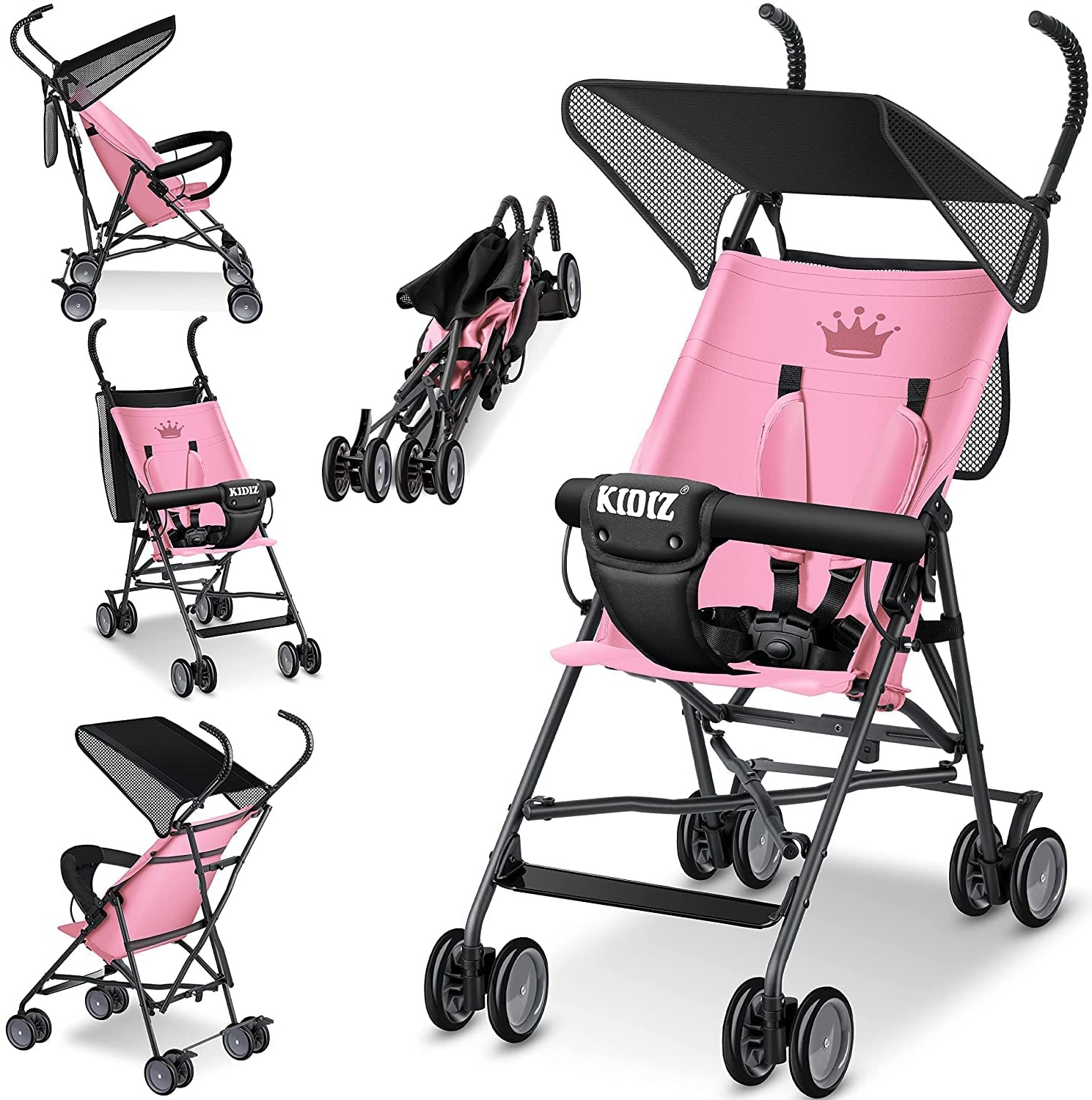 | Name | KIDIZ® Kinderwagen CITY Buggy Kinderbuggy klappbar Liegebuggy Sportwagen Faltbar 360° 4-Zoll-Räder Inkl. Sonnen- und Regenverdeck zusammenklappbar 5-Punkt-Sicherheitsgurt ab 6 Monate, Rosa |