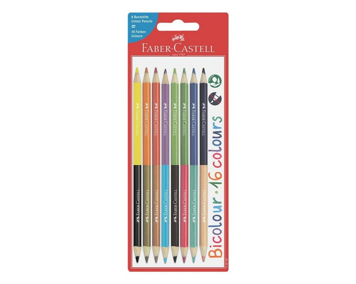 Faber-Castell Buntstift Bicolor16 Farben, leuchtkräftige Farben, bruchgeschützt, nachhaltiges Holz, (8-tlg)