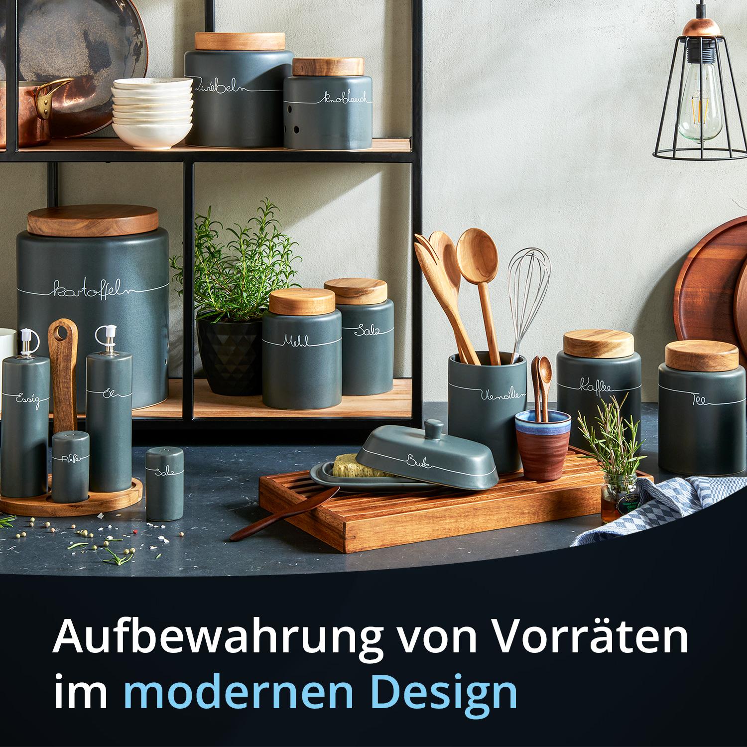 Beschreibung Diese moderne Butterdose in edlem Anthrazitgrau mit Zierschrift ist die perfekte Ergänzung für Ihre Küche. Hergestellt aus hochwertigem Keramik Steingut, ist sie nachhaltig und frei von BPA. Der praktische Knopf-Griff erleichtert das Anheben des Deckels. Mit Maßen von 18,5 x 12,5 x 8 cm bietet sie ausreichend Platz für einen 250 g Butterklotz. Die glatte Oberfläche ermöglicht eine einfache Reinigung per Handwäsche oder feuchtem Tuch. **Highlights** - Modernes Design in Anthrazitgrau - Nachhaltig aus Keramik Steingut - Praktischer Knopf-Griff - Ausreichend Platz für 250 g Butter - Leichte Reinigung **Produkteigenschaften** - Farbe: Anthrazit Grau - Material: Keramik Steingut - Maße: 18,5 x 12,5 x 8 cm - Fassungsvermögen: 250 g Butter - Pflegehinweis: Handwäsche oder Abwischen mit feuchtem Tuch