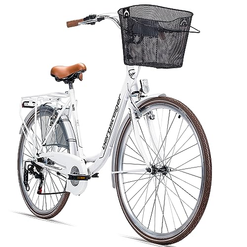 Das Bergsteiger Paris 28 Zoll Damenfahrrad verbindet ansprechendes Retro-Design mit praktischen Funktionen und ist somit ideal für alltägliche Fahrten in der Stadt und auf dem Land. Mit einem guten Preis-Leistungs-Verhältnis und einer soliden Verarbeitung richtet sich dieses Citybike insbesondere an kleinere Personen ab 1,50 m Körpergröße.