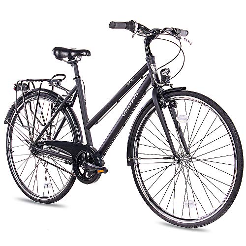 CHRISSON 28 Zoll Citybike Damen - City One schwarz matt 50 cm - Damenfahrrad mit 7 Gang Shimano Nexus Nabenschaltung