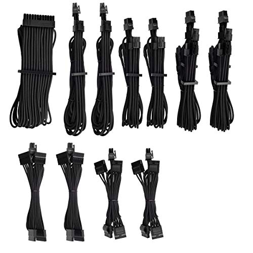 Das Corsair Premium Sleeved Netzteil Pro-Kabel-Set Typ4 (Generation 4-Serie) Schwarz ist ein teures, aber ästhetisch ansprechendes Set von Kabeln, das gut in die Stecker passt und einfach zu manipulieren ist. Es ist jedoch nur mit Corsair RM 2019+ Netzteilen kompatibel und enthält keine zusätzlichen Kabelbrücken.