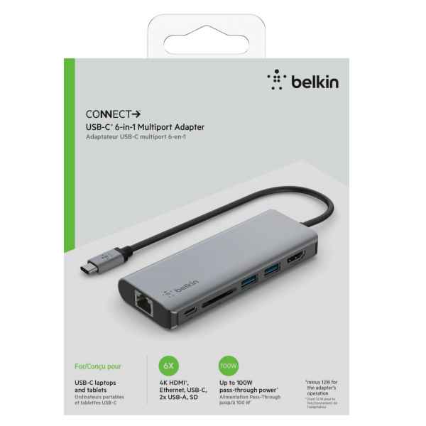 Der Belkin CONNECT USB-C 6-in-1 Multiport-Adapter AVC008btSGY bietet eine einfache Möglichkeit, mehrere Geräte gleichzeitig an ein Macbook oder einen anderen Laptop mit einem USB-C-Anschluss anzuschließen. Mit diesem Adapter können Sie verschiedene Peripheriegeräte wie Monitore, externe Festplatten und Mobiltelefone anschließen und diese direkt vom Computer aus steuern.