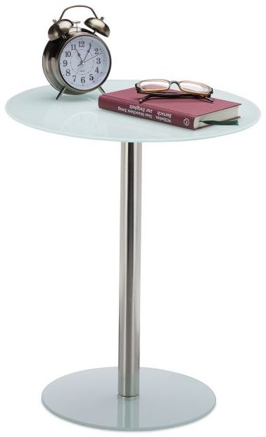 Ein eleganter runder Beistelltisch in Weiß aus Glas und Edelstahl, perfekt für jeden Wohnbereich. Mit einer Höhe von 53 cm und einem Durchmesser von 43 cm bietet er genügend Platz für Dekoration oder als Ablage. Das moderne Design mit 2 Glasplatten und einem Edelstahl-Tischbein verleiht jedem Raum eine stilvolle Note. **Highlights** - Modernes Design mit Materialmix - Stabiler Stand durch 5 cm starkes Standrohr - Belastbar bis ca. 30 kg - Vielseitig einsetzbar als Couchtisch oder Magazintisch - Platzsparend und dekorativ **Produkteigenschaften** - Maße: HxBxT: 53 x 43 x 43 cm - Material: Glas, Edelstahl - 2 dünne Glasplatten - Rundes Fußdesign für festen Stand - Geeignet für Wohnzimmer, Wartezimmer etc.