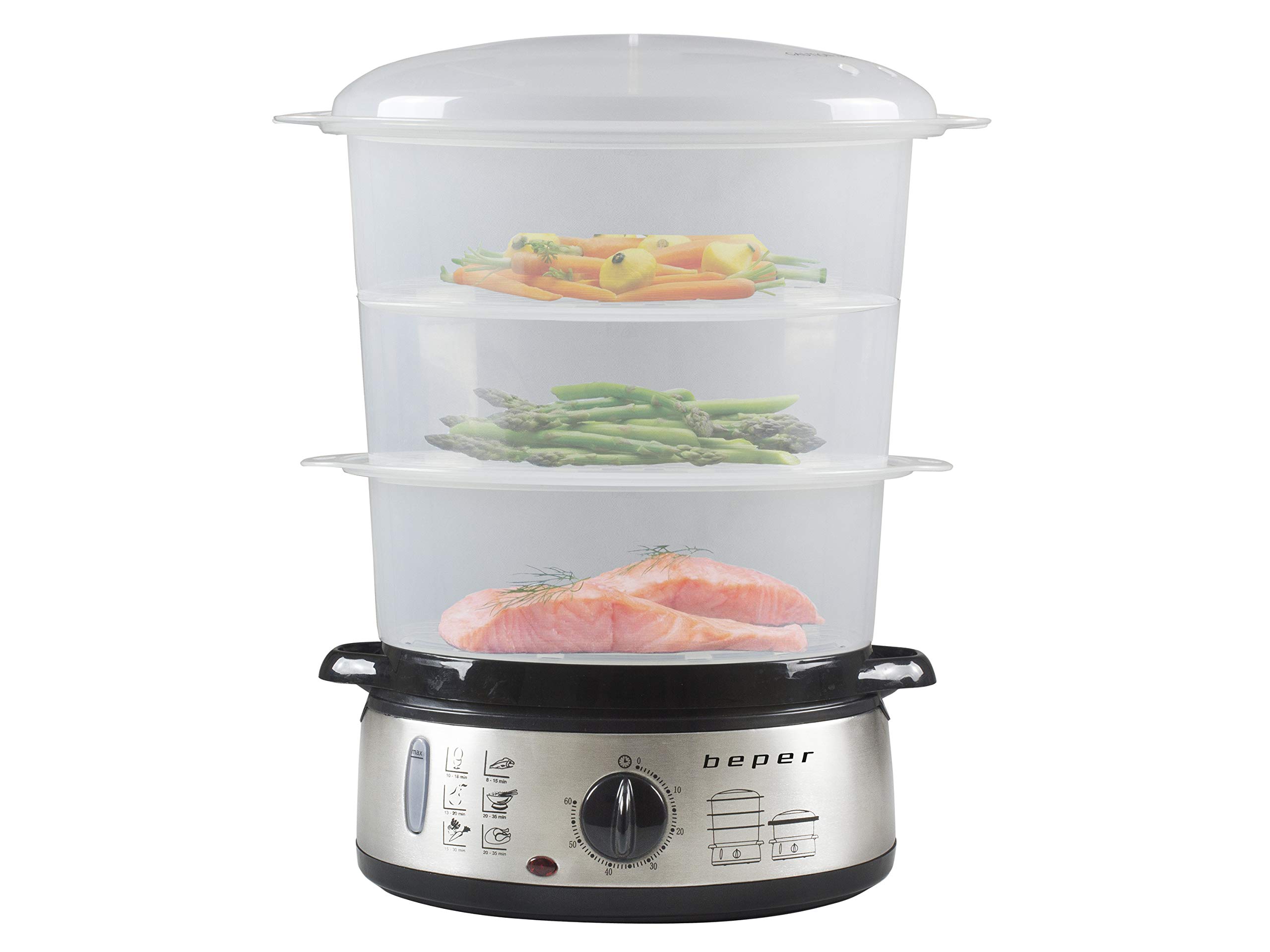 "Ermöglicht gesundes Dampfgaren mit drei transparenten Behältern und einem nachfüllbaren Wassertank, ideal für zeitsparende Zubereitung."