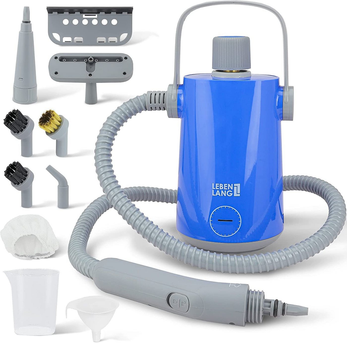 Der Lebenlang Dampfreiniger Handgerät bietet eine Vielzahl von Zubehör und ist handlich sowie leicht, was ihn für grundlegende Reinigungsaufgaben im Haushalt geeignet macht. Er hat jedoch einige Mängel, wie einen kleinen Wassertank, Überhitzung von Griff und Schlauch sowie einen unzuverlässigen Sicherheitsschalter. Zudem fehlt ein Trageriemen und das Gerät kippt leicht um.