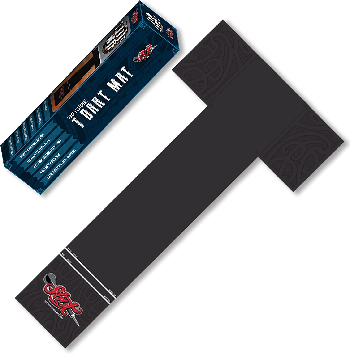 | Beschreibung | Shot T Dart Mat Dartmatte aus Gummi mit dem Shot Logo und Abwurflinien für Soft und Steeldarts. Die Matte hat einen Eigengeruch und ist daher nicht für jeden Raum geeignet. |