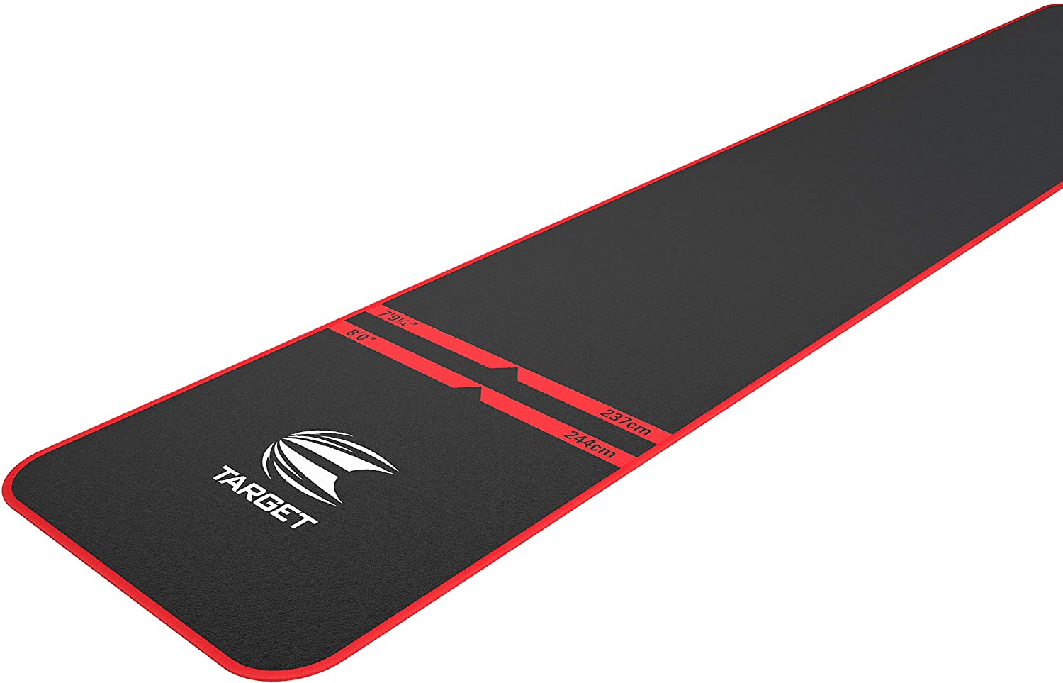 | Beschreibung | Die Target World Champions Dartmatte schützt eure Darts und den Boden vor eurem Board zuverlässig vor Beschädigungen durch abprallende Darts (Bouncer). Durch das klare und praktische Design mit dem Target Logo könnt ihr euch voll und ganz auf euer Spiel konzentieren. Die Abwurflinien für Steeldarts und Softdarts sind farbig und gut sichtbar auf den Teppichen abgebildet. Abmessungen 298 cm x 60 cm x 3 mm |