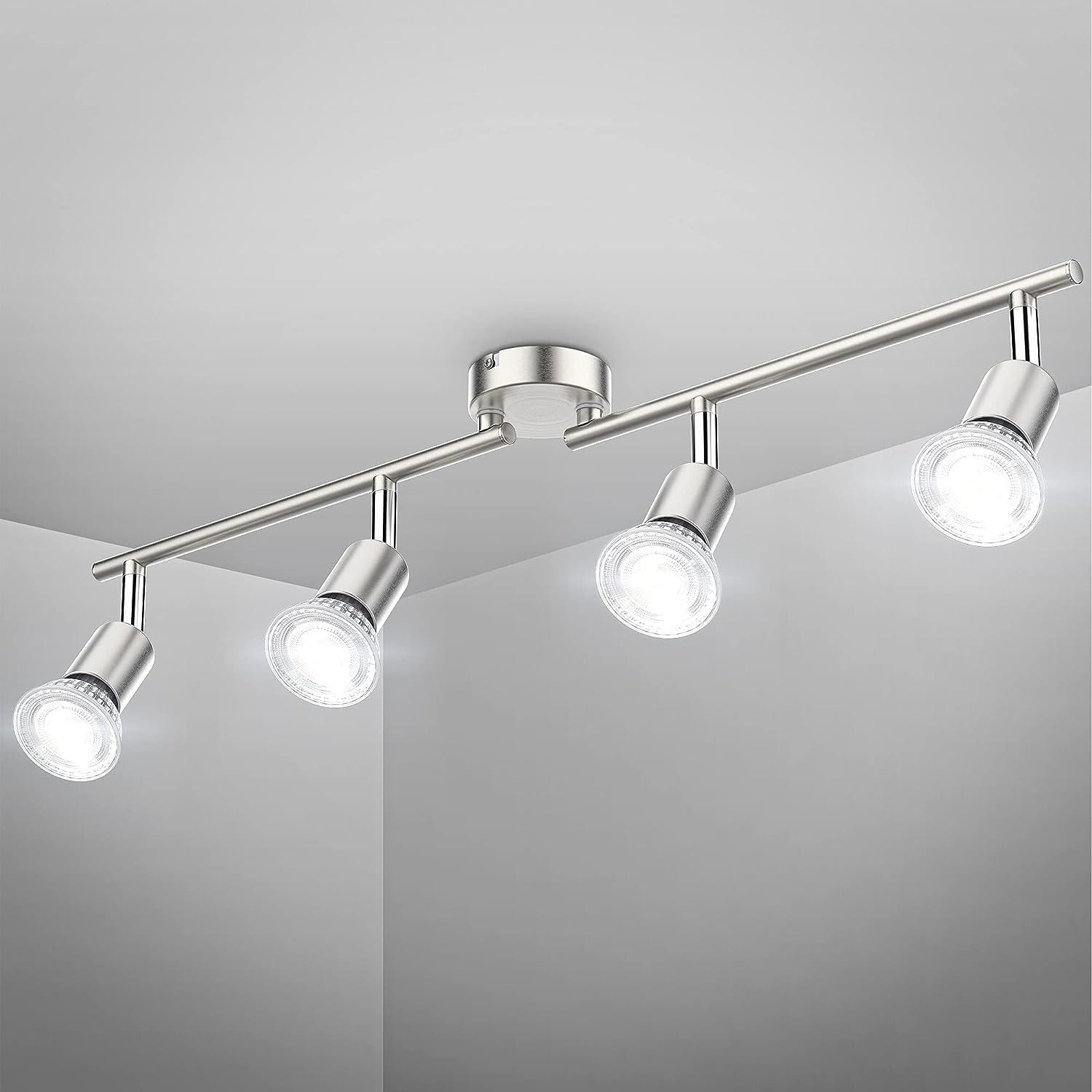 | Name | B.K.Licht Deckenleuchte LED Deckenlampe 4x 5W IP20 4.000K - BKL1407, LED wechselbar, Neutralweiß, 4-flammig GU10 4x 400lm dreh- schwenkbar Matt-Nickel |