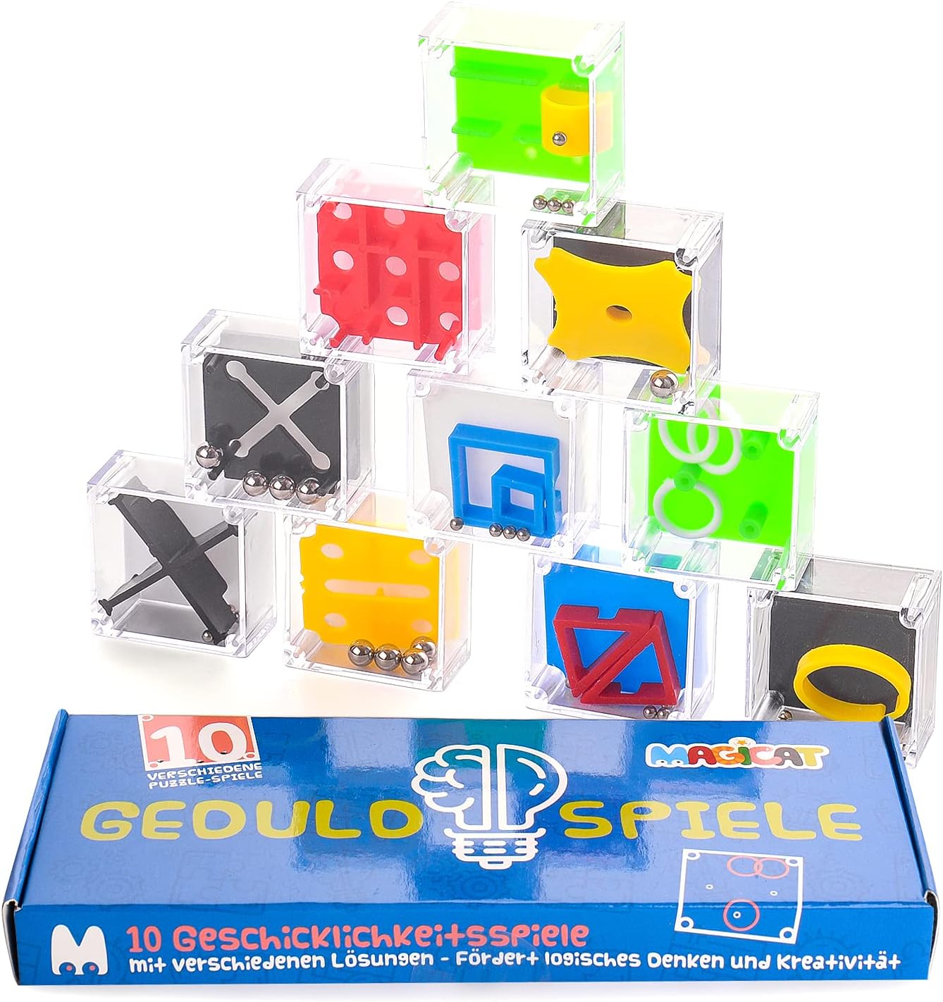 | Name | Magicat Premium Geduldspiele Set, 10 Knobelspiele, Geschenk für Kindergeburtstag, Mini Spiele, Mitgebsel nach Einer Kinderparty |