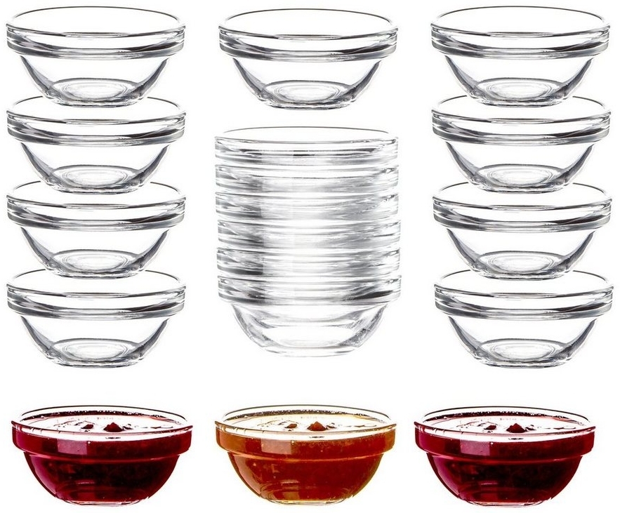 | Name | BigDean 18x Dipschalen Ø 6 cm aus gehärtetem Glas 30ml - Für Dip, Marmelade, Konfitüre - Stapelbar - Für Spülmaschine & Mikrowelle - Mini Soßen-Schalen für Tapas, Ketchup & Buffet |