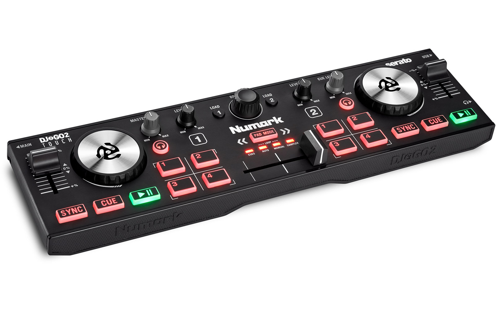 Generation 3 des Numark DJ2GO2 Touch, der kleine Controller muss also seine Fans haben. Nachdem die erste Generation in Grau noch echt billig aussah, ist das zweite und nun auch das dritte Modell kantiger und dunkler geworden.