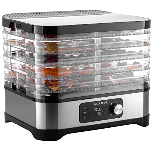 Der KLAMER Dörrautomat bietet eine hohe Leistung und ausreichend Platz für das Dörren von Obst und Pilzen. Mit einem Temperaturregler und Timer ermöglicht er eine präzise Kontrolle über den Trocknungsprozess. Das Gerät ist einfach zu bedienen und arbeitet leise, jedoch kann der Dörrprozess zeitaufwendig sein und die Reinigung der Gitter gestaltet sich als schwierig.
