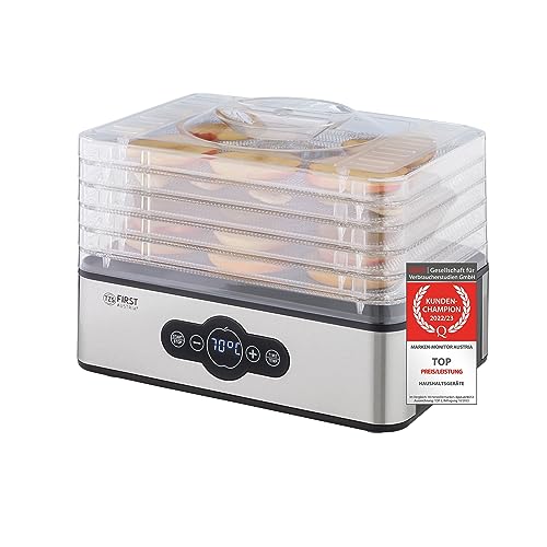 Der Dörrautomat von TZS First Austria bietet die Möglichkeit, Obst und andere Lebensmittel schonend zu trocknen und somit länger haltbar zu machen. Mit seiner leisen Betriebsweise ähnlich einer Mikrowelle liefert er gute Ergebnisse beim Trocknen verschiedener Arten von Lebensmitteln. Das ansprechende Design des Geräts macht es einfach zu bedienen und bietet ein gutes Preis-Leistungs-Verhältnis.