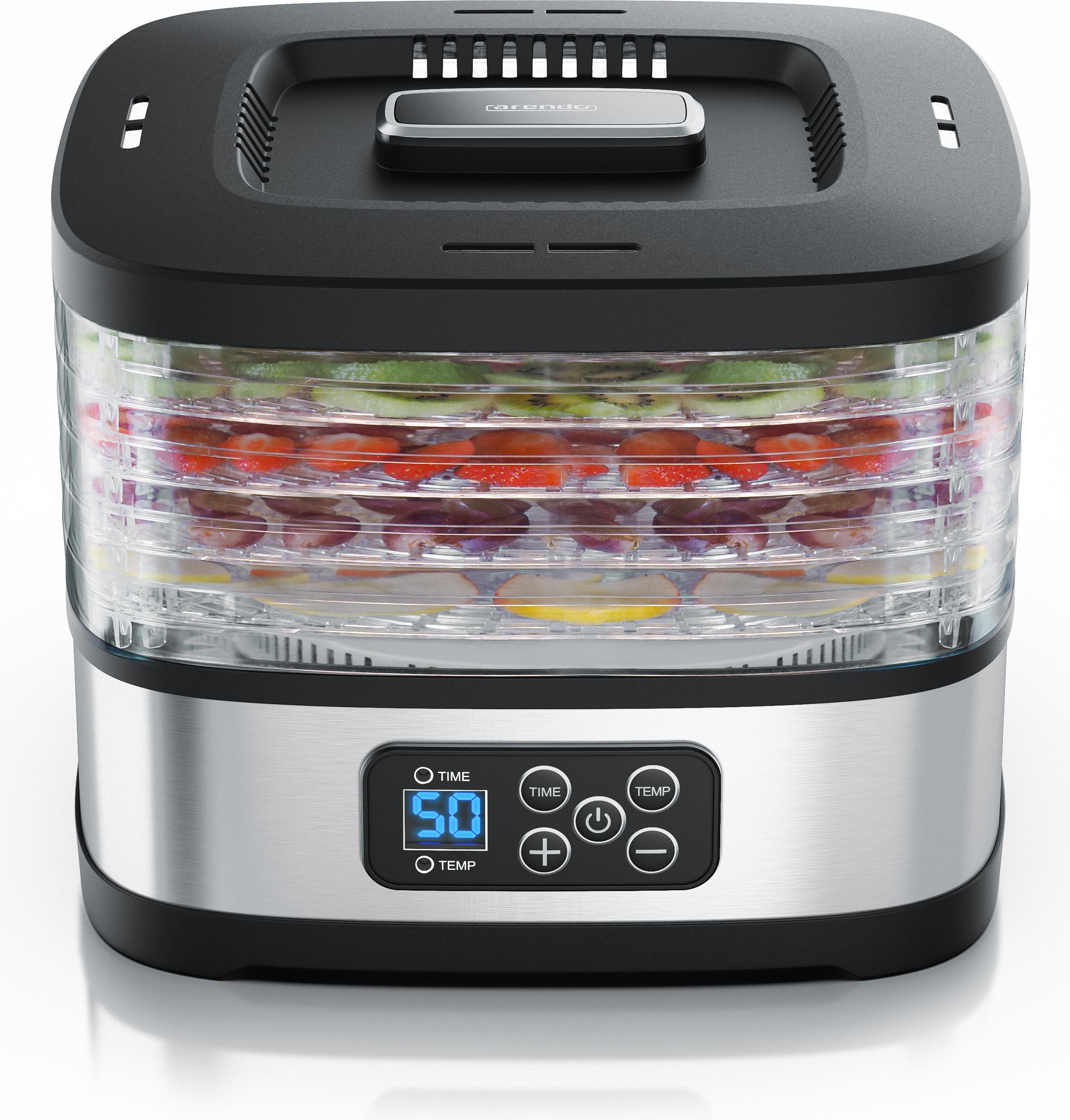 | Lieferumfang | - | - | 2 Silikon-Formen für die Herstellung von 8 Müsliriegeln | 5 Einlegefächer, Silikonform für Müsliriegel, Aufbewahrungsboxen | - | 1. Gerätebasis + Deckel mit Lüftungsschlitzen und Griffmulden 2. Dörrebenen (5 Stk.) mit Griffmulden 3. Wiederverwendbare Dörrfolien (2 Stk.) 4. Silikonformen für Müsliriegel (2 Stk.) 5. Bedienungsanleitung | 4 Dörretagen aus Kunststoff | - | Stöckli 0076.70M Dörrex Dörrautomat inkl. drei Metall-Dörrgitter | Dörrautomat mit 5 Edelstahl-Einschüben (27,5 x 21 cm) und Rezeptheft | 5 Ablagen | - | - | inkl. Kochbuch | - | - | - | Folienschale, Foliensieb, mit Rezeptideen | Dörrautomat DA506 von GRAEF, 6 Tabletts aus hochwertigem, BPA-freiem Kunststoff, Silikonmatte, Heft mit vielen leckeren Rezepten, Bedienungsanleitung | 10 Bleche | Dörrautomat, 4 Ebenen |