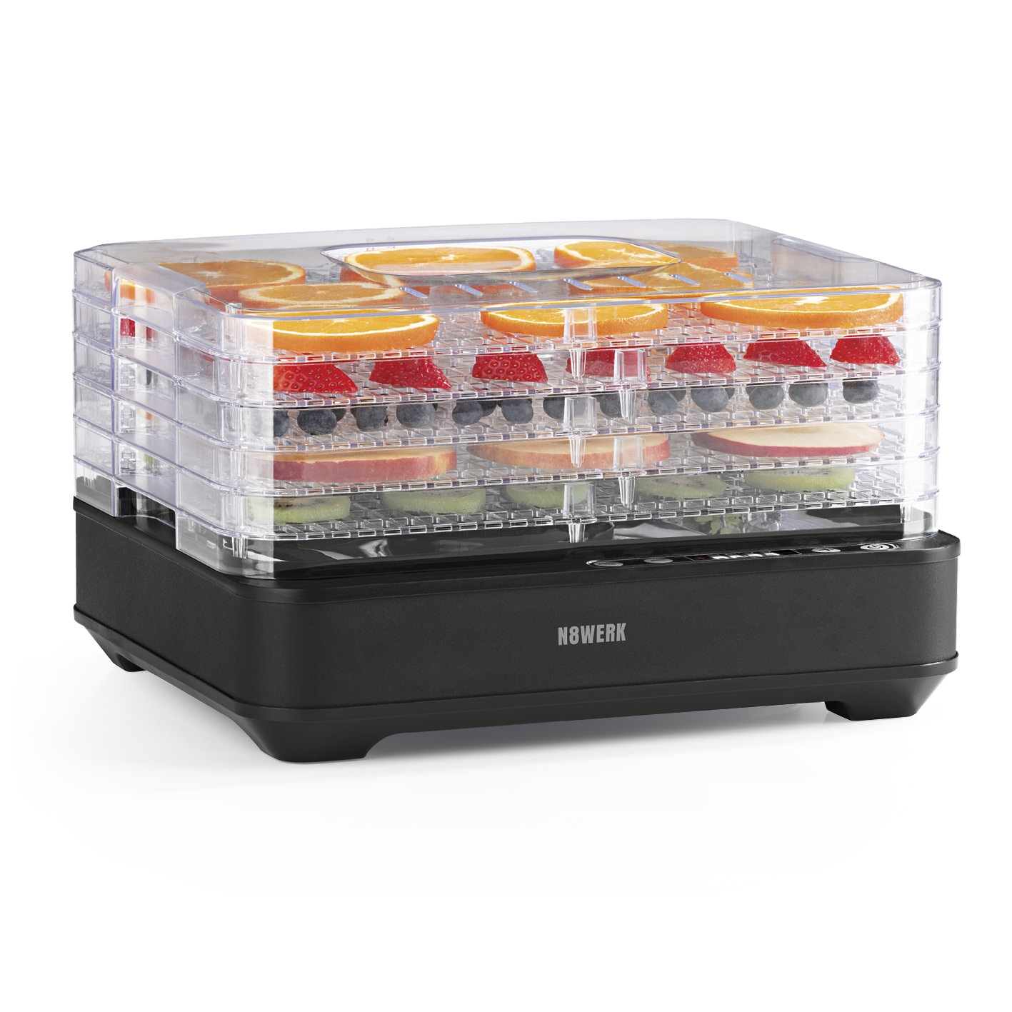 Der Dörrautomat von N8WERK bietet eine einfache und effiziente Möglichkeit, Lebensmittel schonend zu trocknen. Mit seiner kompakten Größe und schönen Optik passt er in jede Küche und überzeugt durch seine unkomplizierte Bedienung sowie die gute Trocknungsqualität für verschiedene Arten von Lebensmitteln. Die 5 Ablagen bieten ausreichend Platz für unterschiedliche Dinge, sodass Sie bequem größere Mengen auf einmal verarbeiten können.