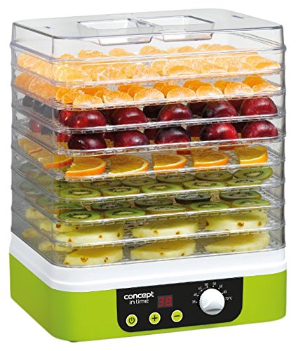 Das CONPT Dörrgerät mit Zeitschaltuhr bietet die Möglichkeit, eine Vielzahl von Lebensmitteln schonend zu trocknen und somit deren Haltbarkeit zu verlängern. Mit stabilen Einlegeböden und einer leisen Betriebsweise ermöglicht das Gerät eine einfache Handhabung und sorgt für gleichmäßige Trocknungsergebnisse. Die stufenlose Temperaturregelung sowie die Timerfunktion erlauben es, den Trocknungsprozess individuell anzupassen.