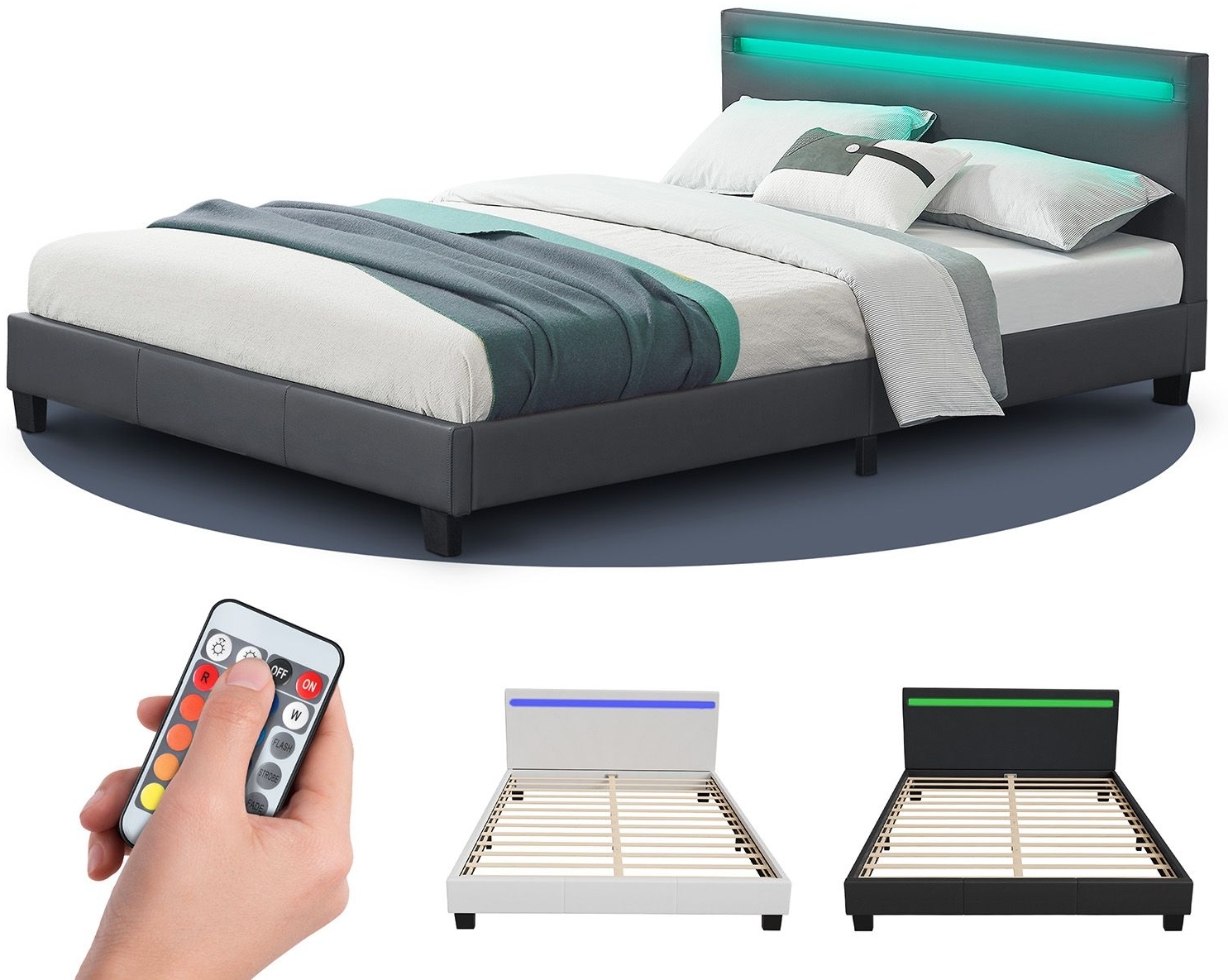 | Name | Juskys 'Paris' Polsterbett mit LED-Beleuchtung und Lattenrost, Kunstleder, Dunkelgrau, 140x200 cm, ohne Matratze |
