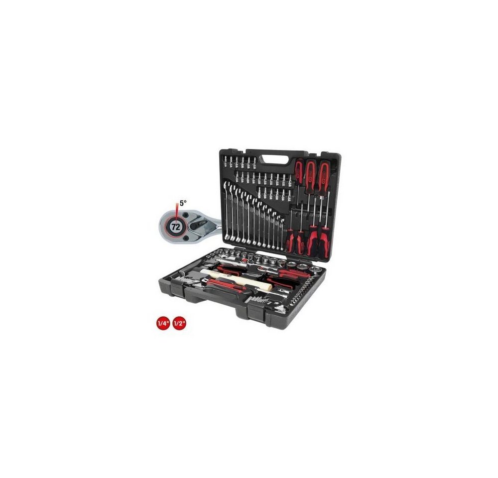 • Dieser Steckschlüsselsatz von KS Tools bietet eine Vielzahl von 97 Werkzeugen in einem Kunststoffkoffer