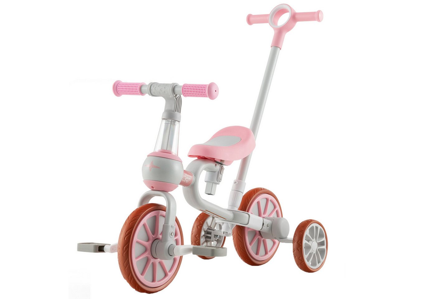 COSTWAY Dreirad 4 in 1 Laufradverstellbar, von 2-4 Jahren, bis 30kg, Rosa