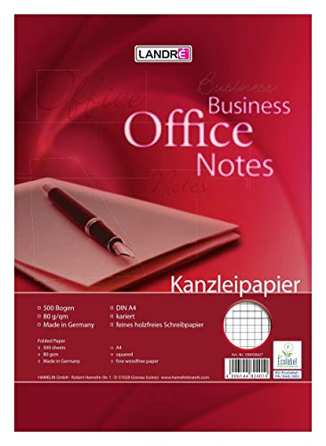 • Das Landré Kanzlei-Papier A4 in kariertem Design besteht aus 500 Bogen mit einer Lineatur 22. Das 80 g/m² Papier ist holzfrei und bietet eine angenehm glatte Oberfläche für eine gute Beschreibbarkeit