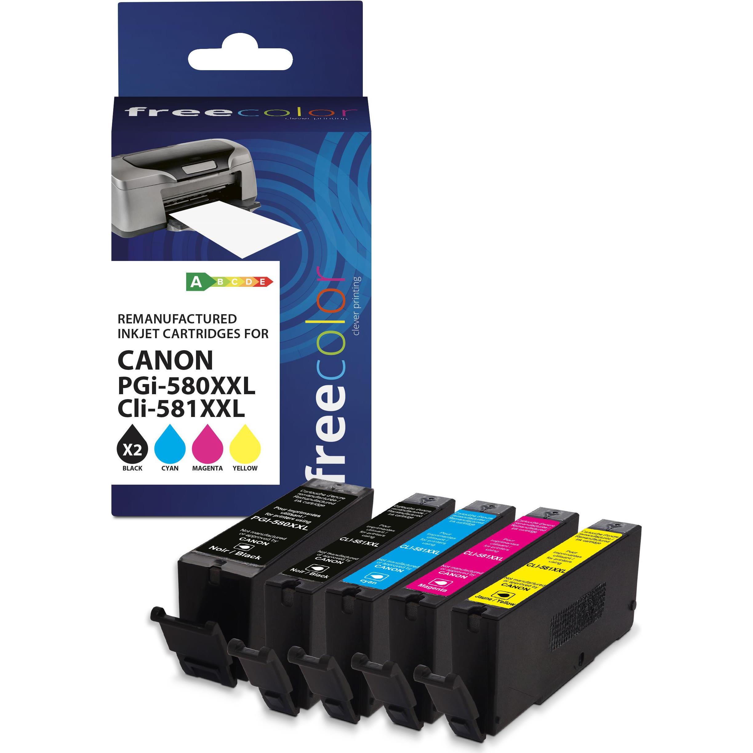 Freecolor Druckerpatrone Canon PGI-580XXL schwarz + CLI-581XXL BK/C/M/Y5er Set, wiederaufbereitet, hohe Tintenleistung