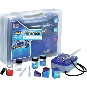 Das Basic Set mit Kompressor von Revell bietet Anfängern im Modellbau eine einfache Möglichkeit, flächige Bemalungen durchzuführen. Der Kompressor ist einfach zu bedienen und liefert gute Ergebnisse für den Einstieg in die Airbrush-Technik. Das Set enthält alles Notwendige für den Anfang und zeichnet sich durch ein relativ leises Betriebsgeräusch sowie eine unkomplizierte Reinigung der Pistole aus.