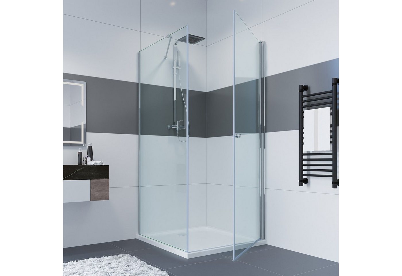 IMPTS Eckdusche Duschkabine Eckeinstieg PendeltürBxT: 80x80 cm, Sicherheitsglas, Inkl. Duschwanne & Ablauf