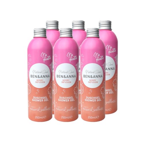 Ben & Anna - Duschgel Berry - 6er Pack - Shower Gel - NaturkosmetikVegan, Ohne Plasik, Alu Dose