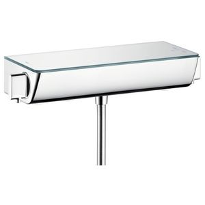 Das hansgrohe Ecostat Select Aufputz Duschthermostat überzeugt durch sein stilvolles Design und eine einfache Bedienung. Die Temperatur lässt sich konstant halten, und die Ecostop-Funktion hilft, Wasser zu sparen. Die Abstellfläche aus Glas ist praktisch und leicht zu reinigen. Allerdings könnte die Tiefe in kleinen Duschen problematisch sein, und die Kunststofffront erfordert besondere Pflege, um Wasserflecken zu vermeiden.