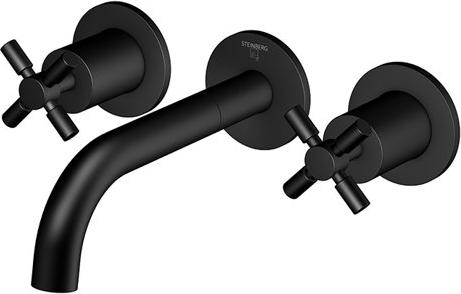 • Die Steinberg Badarmatur aus der Serie 250 ist ein Komplettset für Waschtische mit 3-Loch Wandmontage
