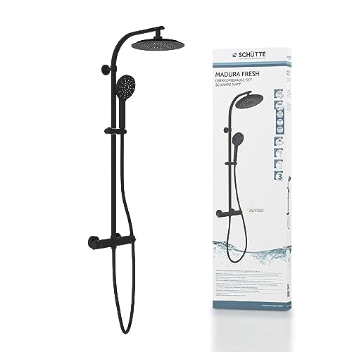 Das Duschsystem mit Thermostat von SCHÜTTE MADURA bietet eine schnelle Erreichung der gewünschten Duschtemperatur und ermöglicht einen einfachen Wechsel zwischen Handbrause und Regendusche. Dank seines schönen Designs fügt es sich harmonisch in jedes Badezimmer ein und überzeugt zudem durch eine einfache Montage sowie geringes Nachtropfen.