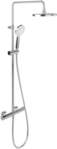 Villeroy & Boch Universal Showers DuschsystemDuschset mit verstellbarem Handbrausehalter, Regendusche und Thermostat, Handbrause mit 3 Strahlarten, runder Duschkopf, Chrom
