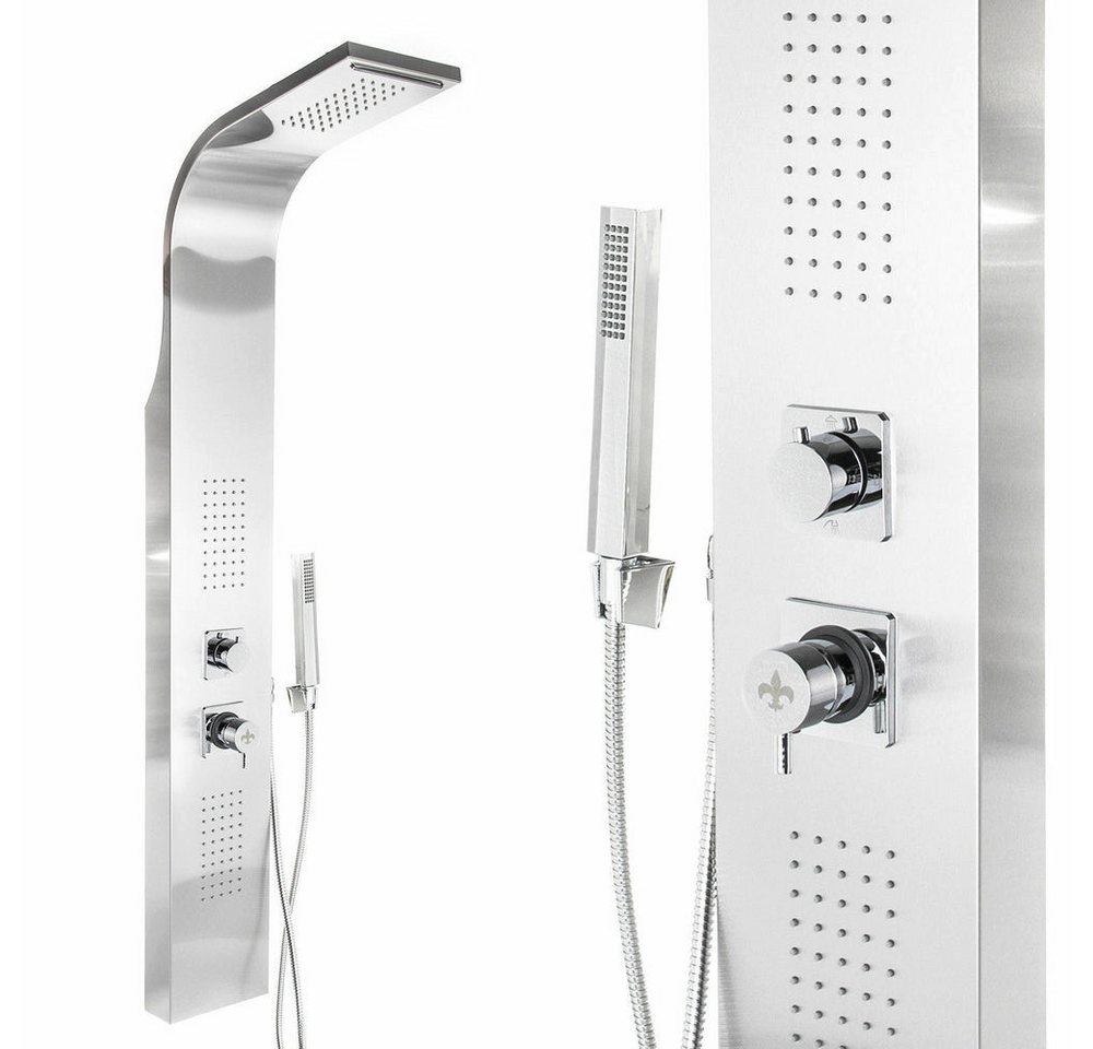 • Dieses elegante Modell vereint Schwalldusche, Handbrause, Körperdüsen und Regendusche in einem Multitalent