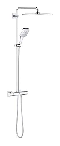 Das GROHE Rainshower Smartactive 310 Duschsystem mit Thermostatarmatur bietet eine erschwingliche Alternative zu teuren Mischbatterien. Durch seine wassersparende Technologie ermöglicht es ein angenehmes Duscherlebnis und hilft dabei, den Wasserverbrauch zu reduzieren.