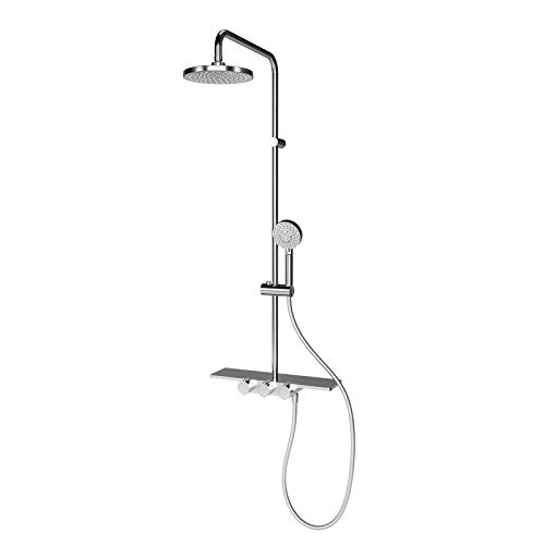 Schulte Duschsystem mit Sicherheits-ThermostatKopfbrause rund, Chrom, Duschmaster Rain Modern mit Regendusche und Ablage, EP969280 02
