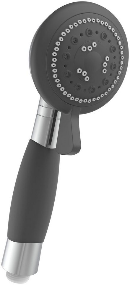 Schütte Handbrause VITALmit 4 Strahlarten, rutschfestem Griff, Duschbrause, Chrom/Schwarz