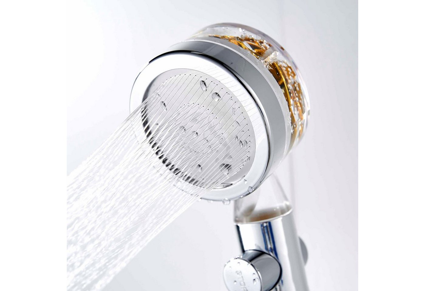 • Unser Duschkopf mit integriertem Wasserfilter sorgt für eine hygienischere und gesündere Duscherfahrung, indem er Schadstoffe entfernt