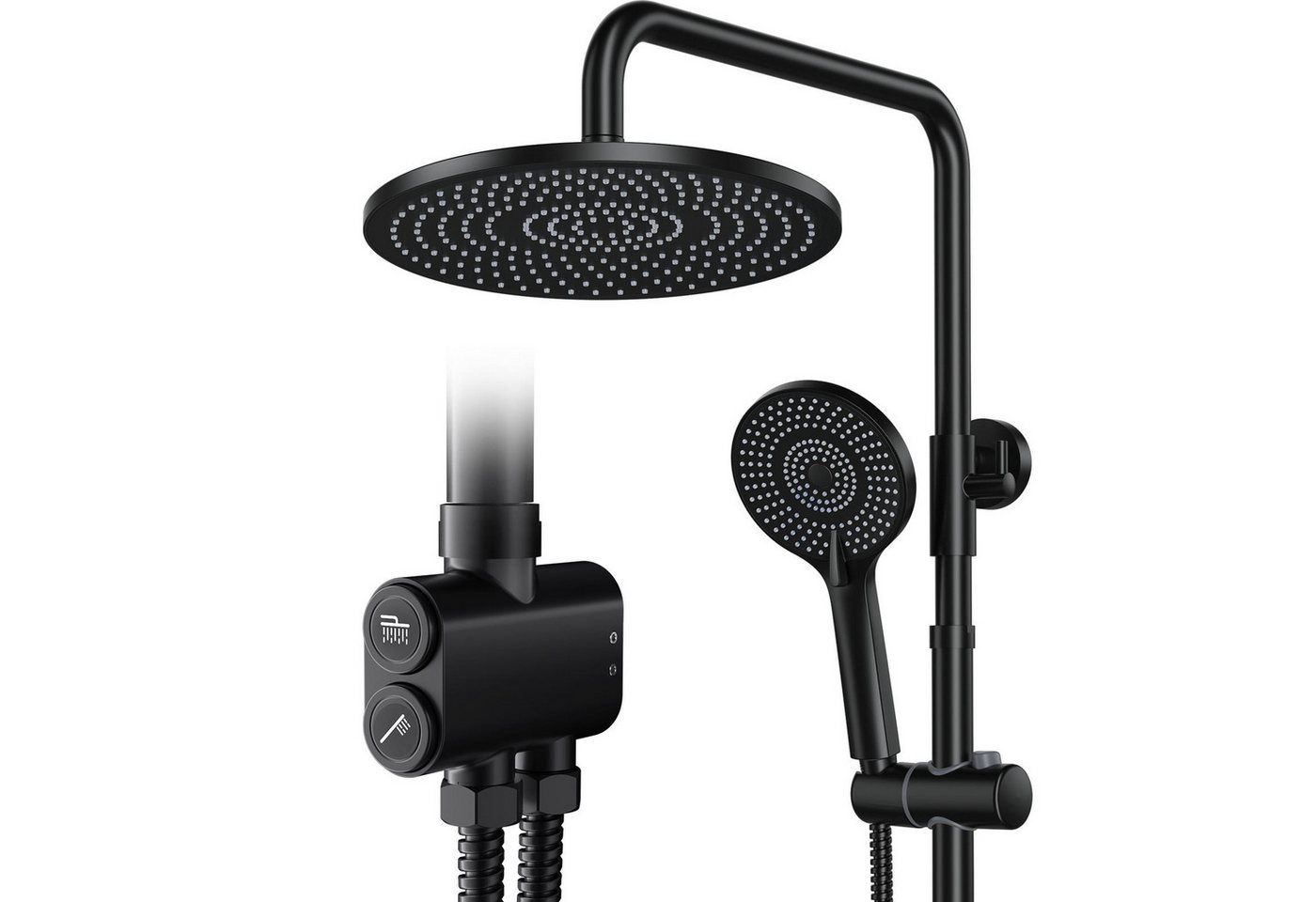 Rainsworth Duschsystem ohne Armatur3 Strahlart(en), 25cm Rund Regendusche und 3 Strahlarten Duschkopf, Druckknopfsteuerung, Edelstahl