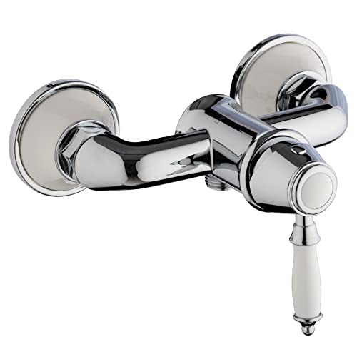 PaulGurkes Duscharmatur Einhandmischer Nostalgie Retro Armatur Mischbatterie Landhausstil weiß Keramikeinlagen verchromt