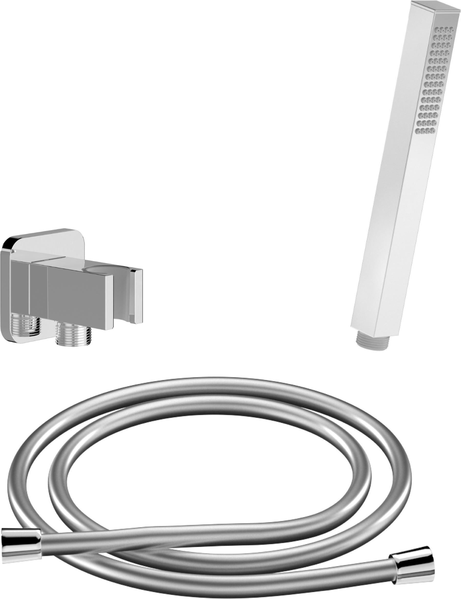 Chris Bergen Duschbrause Brauseset (22.90 l/min) - Eckige Stabhandbrause, Messing-Wandanschlussbogen, Made in Germany Chrom-Farbe