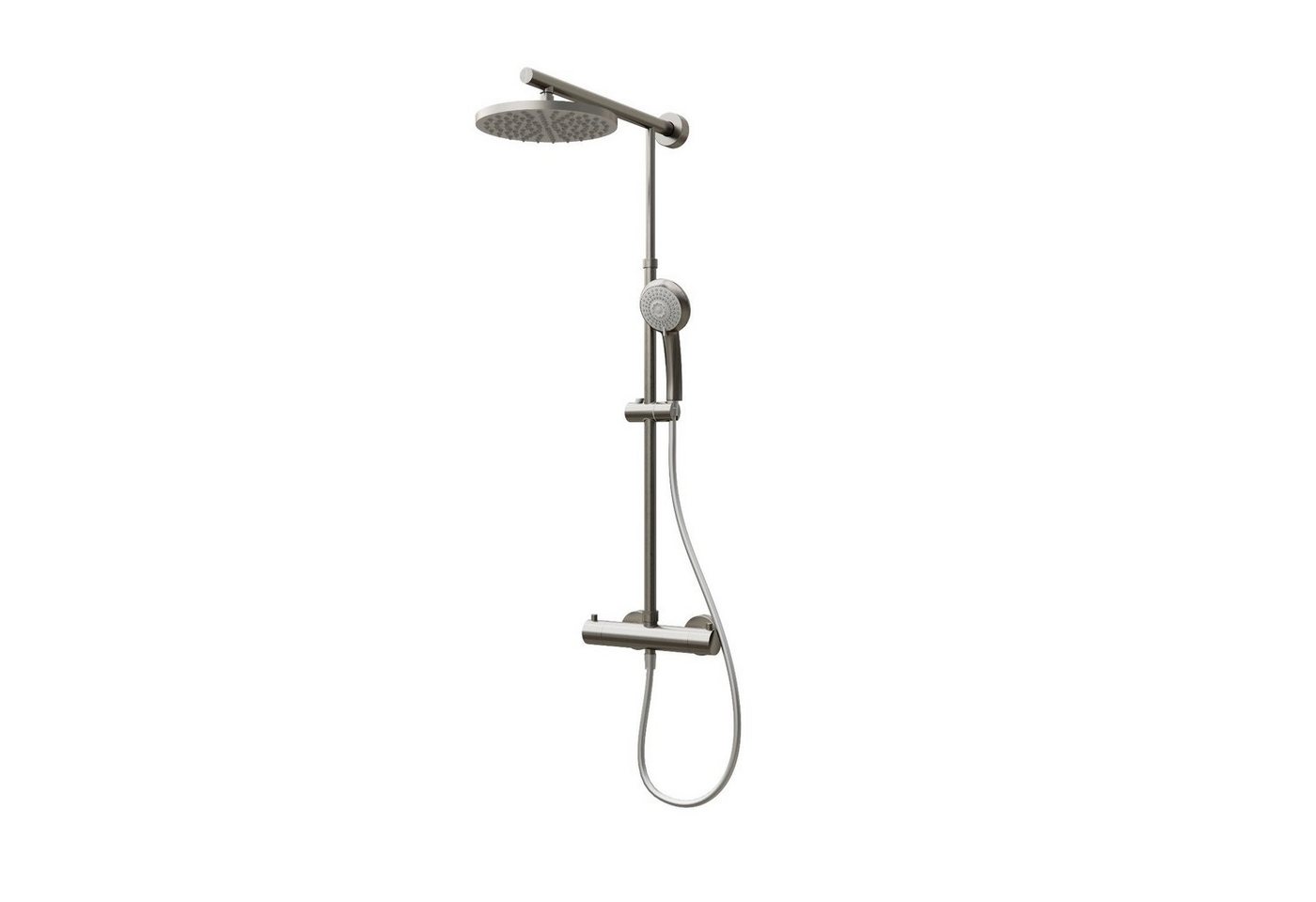 Schulte Duschsystem DuschMaster Rain "Classic" mit ThermostatHöhe 155.4 cm, inkl. Handbrause und Kopfbrause, extra-flach, Edelstahloptik, Regendusche mit Sicherheitsthermostat