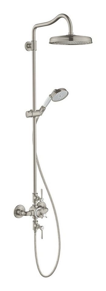 hansgrohe Axor Montreux Showerpipe mit Thermostat und Hebelgriff - Edelstahl OpticRegendusche mit 15l/min Durchfluss