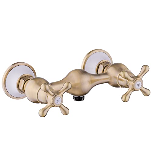 PaulGurkes Bronze Duscharmatur Messing Antik Zweigriffmischer Retro Mischbatterie Landhausstil Kreuzgriff mit Keramikeinsatz