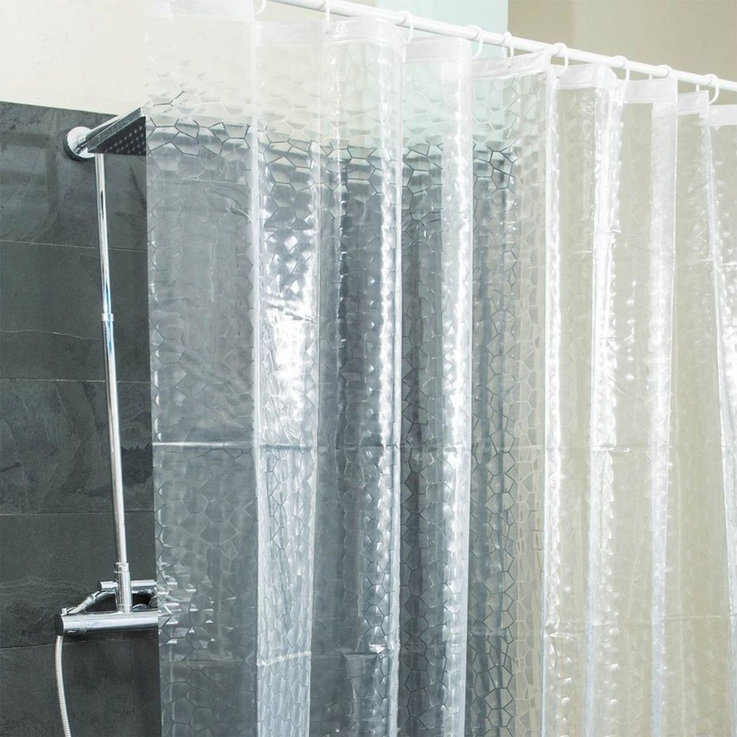 | Name | Goods+Gadgets Duschvorhang 3D Muster Optische Täuschung (Transparent Diamonds, Weiß, Periodensystem, Facebook & Bambus Design), Anti-Schimmel Vorhang |