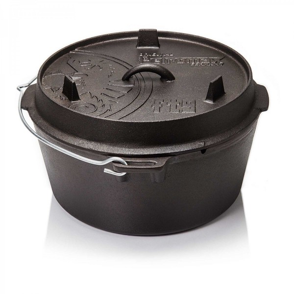 Der Petromax Feuertopf Dutch Oven ist ein hochwertiger, gusseiserner Topf mit einem Fassungsvermögen von 8 Litern. Er eignet sich hervorragend für das Kochen im Freien auf offenen Flammen oder in Ihrem heimischen Ofen. Der Deckel des Topfs verfügt über drei Füße und kann auch als Pfanne genutzt werden. Die gute Hitzeleitfähigkeit und gleichmäßige Wärmeverteilung ermöglichen eine perfekte Zubereitung Ihrer Lieblingsgerichte.