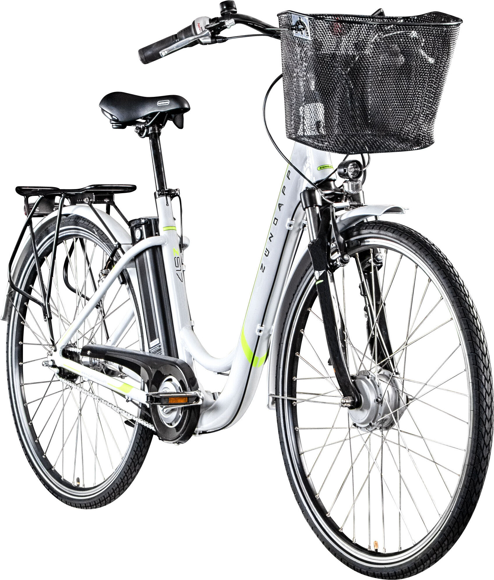 Zündapp Z517 E Bike Damenfahrrad 28 Zoll 155 - 190 cm mit 7 Gang Nabenschaltung und Rücktrittbremseweiß/grün, Tiefeinsteiger Rahmen, 375 Wh Akku